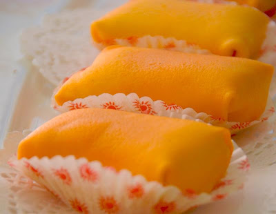 What lies within are plastic cases with built-in cooling systems that in turn contain some sort of exotic soft pastry. Each is about the width of an adult's open palm, and golden-yellow in color.]